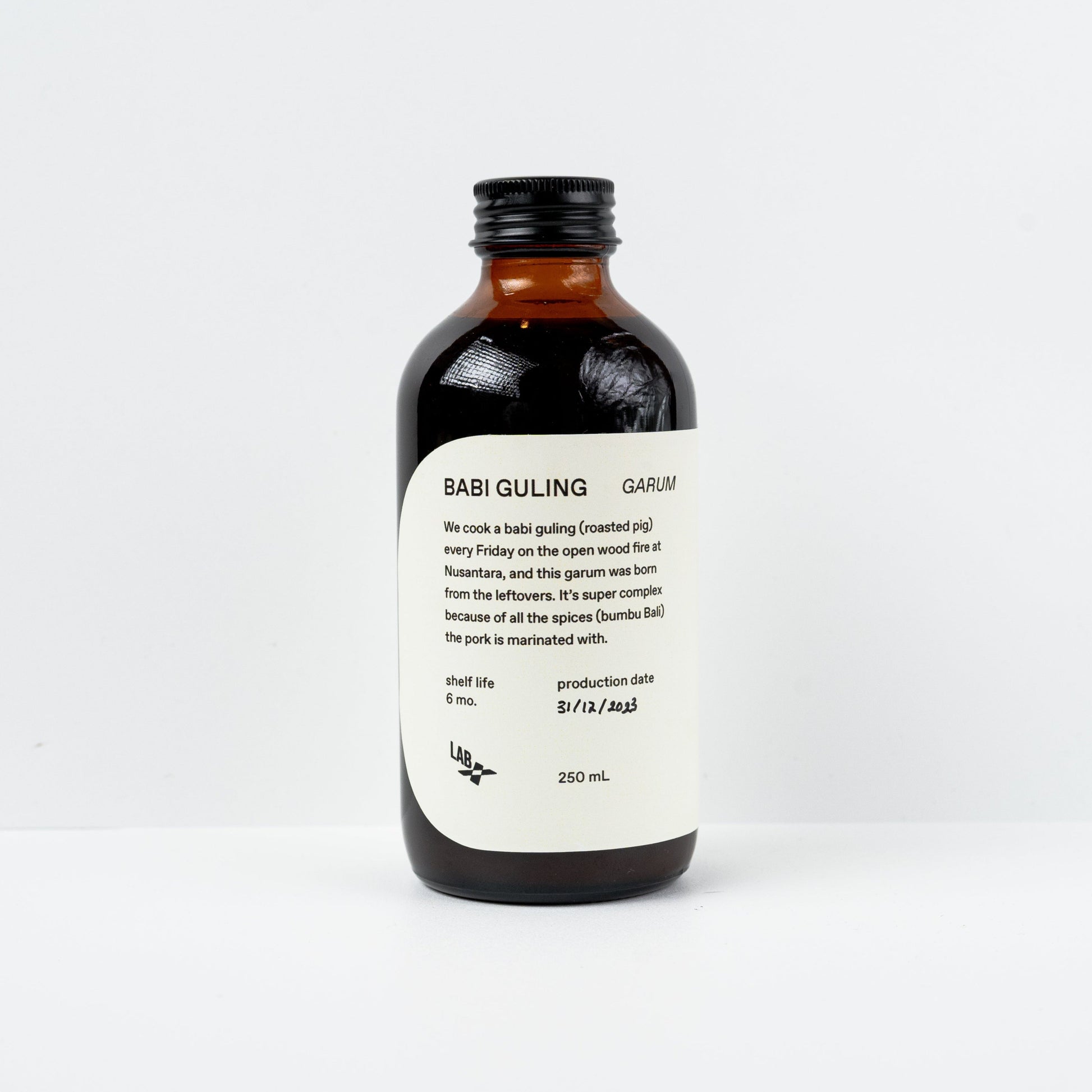 We used to cook a Babi Guling (roasted pig) every Friday on the open wood fire at Nusantara, and this garum was born from the leftovers. It's super complex because of all the spices the pork is marinated with.